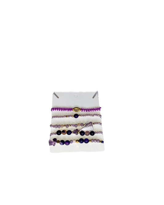 Gemstone beaded bracelet set. Multicolor.